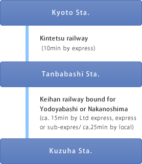 Take the following Keihan bus from the bus stop to Kokudou-Tajika (ca. 15min)