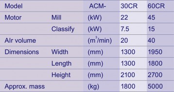 The ACM-CR is an ACM Pulverizer, widely used worldwide, with a high performance air classifier adopted from a jet mill. The result is a mechanical mill with performance approaching jet mill levels.