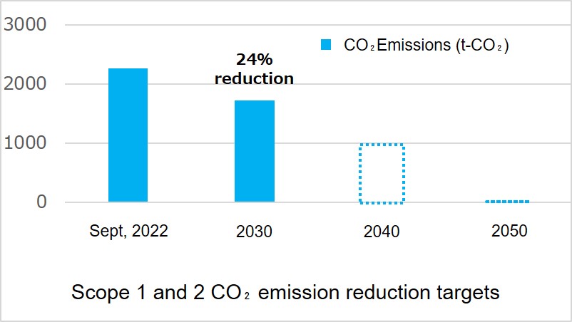 In addition, using fiscal 2022 Scope 1, 2 levels as reference values, the Group has established Group Scope 1, 2 reduction targets* aimed at reducing CO2 emissions.