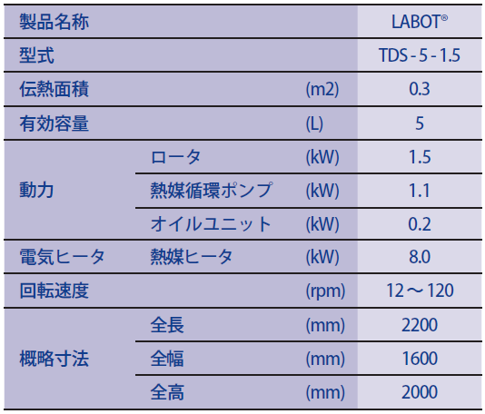 U 型ジャケットを流れる熱媒体と内部のトーラス型(ドーナツ状)ディスクからなるロータの中を流れる熱媒体により、原料を内外両面より同時に加熱する