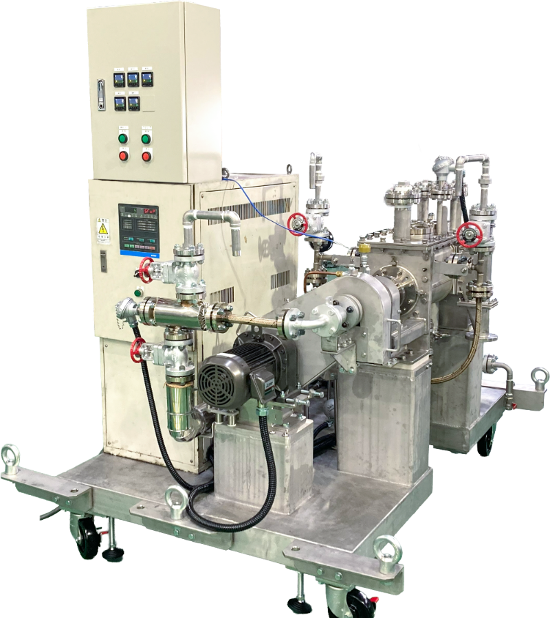 小型トーラスディスク、熱媒ヒーター、熱媒循環装置が一体となっています。