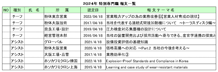 当社では「技術開発」、「国際化」、「人材集団の形成」を経営の基本方針としており、「粉体技術の開発を通して社会に貢献する」という理念のもと、顧客の多様なニーズに的確に対応するため、OJTによる業務経験の蓄積を育成の中心として、事業を通じてより良い社会の実現に寄与できる人材の育成を目指しております。